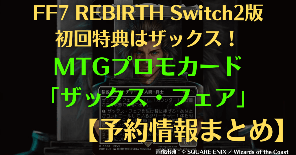 FF7 REBIRTH Switch2版の初回特典はMTGプロモカード「ザックス・フェア」!【予約情報まとめ】