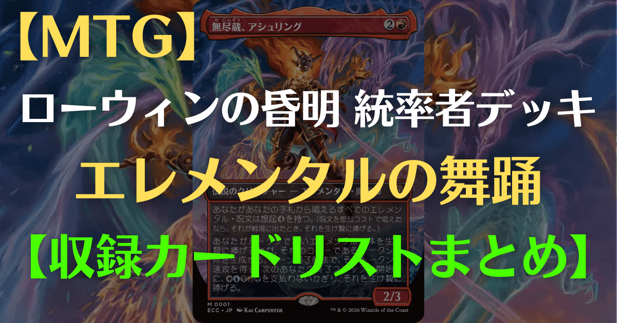 発売日2026年1月23日の統率者デッキ《エレメンタルの舞踊》のデッキリストがマジック:ザ・ギャザリング公式サイトに掲載されていましたのでまとめました。