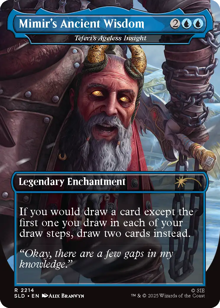 - 1x Teferi’s Ageless Insight as “Mimir’s Ancient Wisdom” (Reversible)
