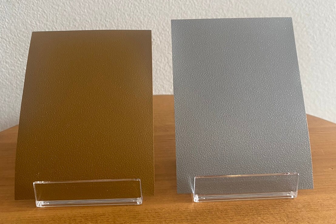 エンボス加工が粗目か細目か、両面カラー加工か背面黒加工かで作りが異なるようです。