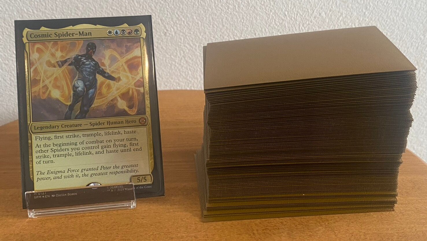 私はデッキごとにスリーブの色を分けたいので統率者デッキで100枚使用し、残り50枚はリミテッド専用に保管していますが、最初から100枚入りのセットがあればできればそちらを購入したいところです。